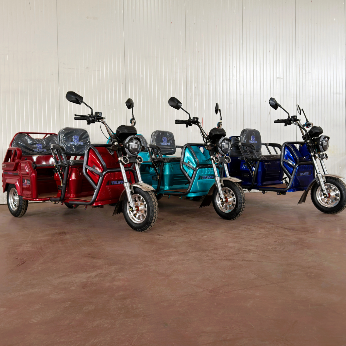Електрическа карго триколка T-500 UNIVERSAL карго + пътнически 2000W нов модел 2026г. С 500кг товароносимост и е снабден с 72V батерия . С всички ЕВРОПЕЙСКИ СЕТРИФИКАТИ - TUV , EEC , CE , CCC , COC , ROHS (по желание може да се регистрира и да се кара в централните градски части и селските райони). Високопроизводителни батерии от последно поколение BLACK GOLD с увеличен капацитет.