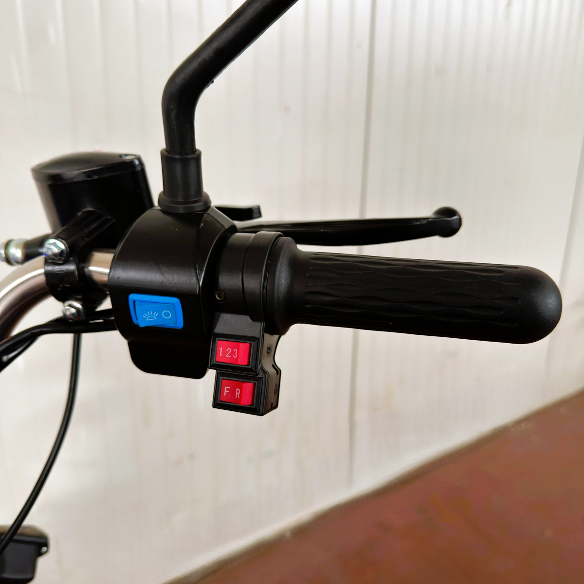 Допълнителна информациязадно предаване, с диференциал подсилено предно окачване многолистови задни ресьори клаксон - новият LED икономичен фер с 15 светодиода - предна амортисьорна вилка LCD дисплей показващ скорост, заряд и волтаж на батерията, пробег, светлини пълна светлинна окомплектовка- преден фар, гарбарит, стопове, предни /задни мигачи странични светлоотразители, висок клирънс, аларма и светлинна сигнализация, ъгъл на изкачване- 25°, спирачна система - кормилна спирачка, крачна спирачка и ръчна спирачка за паркиране, външни размери на карго платформата: 1000x900