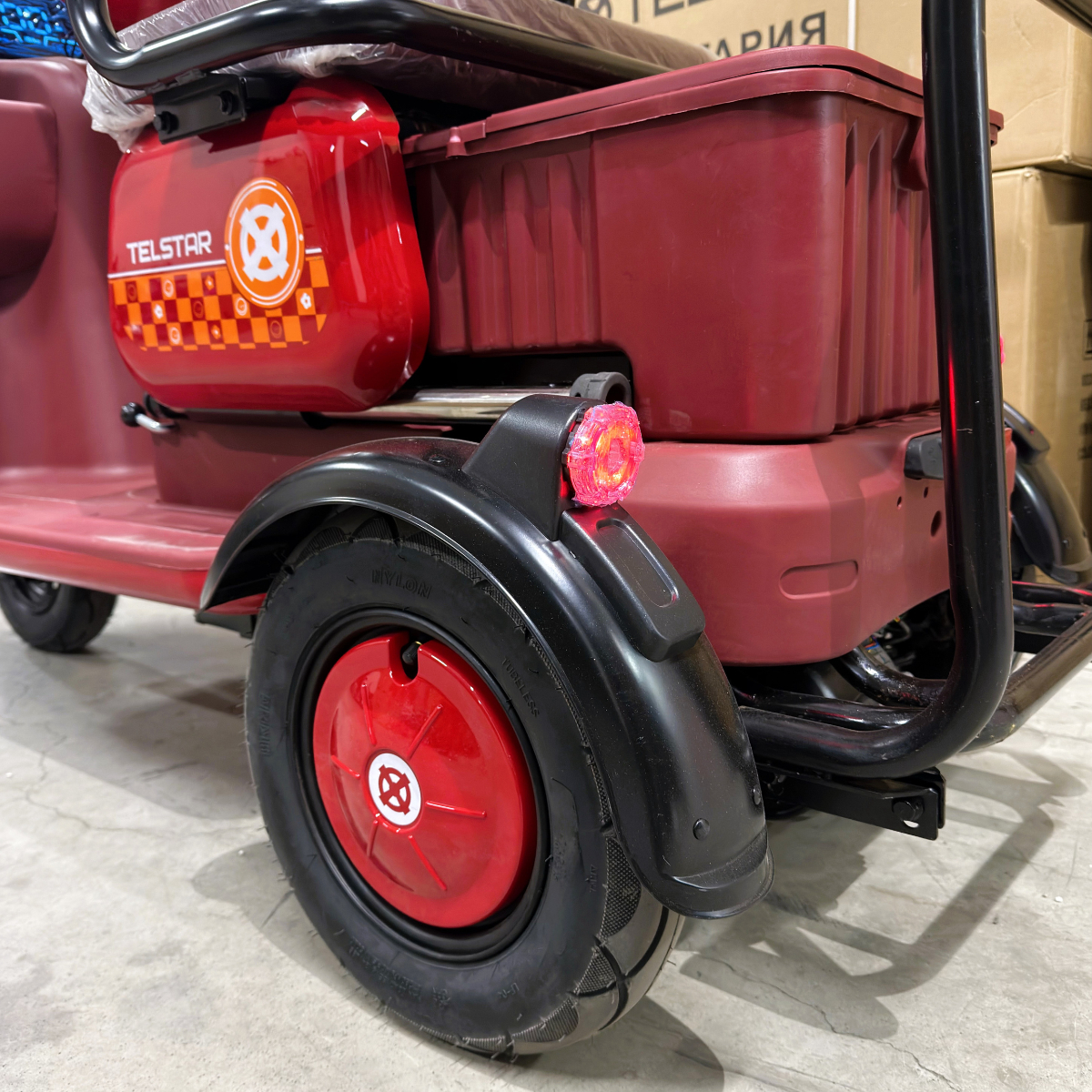 | Допълнителна информация | задно предаване, с диференциал - брой места: 3 - местна , покрив + предно стъкло + чистачка с електромотор - спирачна система: 1 крачна и 2 ръчни спирачки за по-удобно спиране - 3 скорости + задна скорост - аварийни светлини - ОГРОМЕН дигитален LCD дисплей, тип ТАБЛЕТ, показващ над 5 параметъра - странични светлоотразители - пълна светлинна окомплектовка ( преден LED фар тип ЛУПА , мигачи- предни, задни, стопове, габарити) - клаксон - луксозна пластмасова кошница за багаж отзад - отделение за багаж под седалката - Подарък- 2 бр. огледала за задно виждане + 2бр. дистанционни с аларма и безконтактно включване + предна пазарска кошница за пазаруване + ГОЛЯМА задна пазарска кошница за пазаруване |