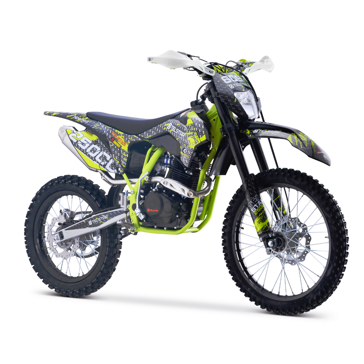 Ново на пазара за ендуро  ! Представяме на вашето внимание Мотоциклет 250CC 4 stroke TELSTAR GAS ENDURO CROSS. Мотоциклетът е изграден върху издръжлива рамка тип KTM, изработена от хром-молибденова стоманена сплав. Изпитаният във времето двигател Zongshen беше използван като задвижващ агрегат. Карбураторът NIBBI  е отговорен за приготвянето на горивната смес. Здрави джанти с подсилени джанти от алуминиева сплав. Агресивният протектор на офроуд гумата Yangsing с мощни грайфери ще ви позволи да преодолявате трудни офроуд зони. Високата седяща позиция на водача осигурява удобно управление на мотора. Стандартните окачвания на този мотор ще осигурят плавно и меко каране извън пътя. Фарът перфектно осветява пътя в тъмното. Висококачествен ауспух придава приятен и басов звук на ауспуха. Яркaта  оригинална графика на мотора ще ви направи видими на пътя и ще привлече вниманието на минувачите. Страхотен мотор Enduro без конкуренция за цената. Един от най-достъпните в тази конфигурация и размер в момента. Страхотен вариант да започнете вашата професионална ендуро кариера и страхотен за активни развлекателни дейности сред природата.
