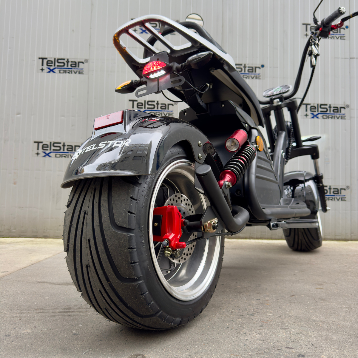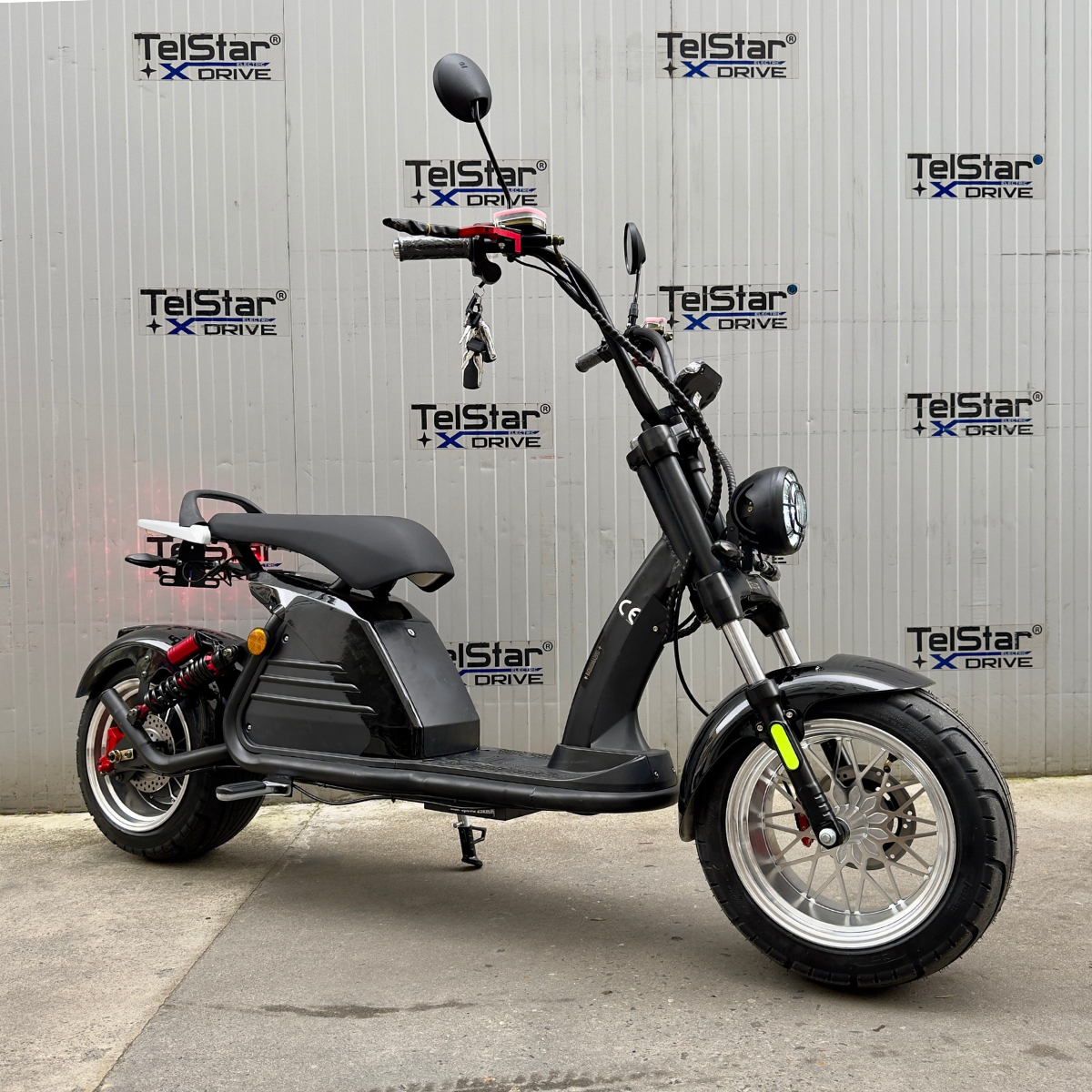 Нов модел електрически скутер  BIG CITY HARLEY X6 ULTRA SPORT CE 60V 35Ah 4000W УСИЛЕНА РАМКА + гуми с по-голям диаметър + по-мощен двигател с двойна седалка, предни и задни усилени амортисьори, мощен ПОДОБРЕН 3000W безчетков мотор, голям LCD екран, аларма, защита против кражба, дистанционно, GR дискови спирачки, пълна светлинна окомплектовка + CE и EEC сертификат.